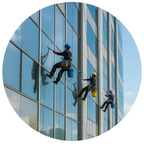 Nos techniciens utilisent des perches télescopiques, nacelles et équipements antichute pour atteindre les vitres les plus hautes en toute sécurité, tout en garantissant un nettoyage sans trace.