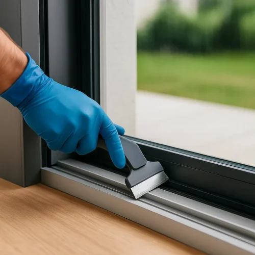 Nous privilégions l’eau osmosée (sans minéraux, donc sans traces) et des microfibres vitrages. Pour des cas spécifiques (graisses, embruns, insectes), nous complétons avec des solutions compatibles avec vos traitements (anti-UV, films solaires). Zéro odeur forte, zéro résidu gras.